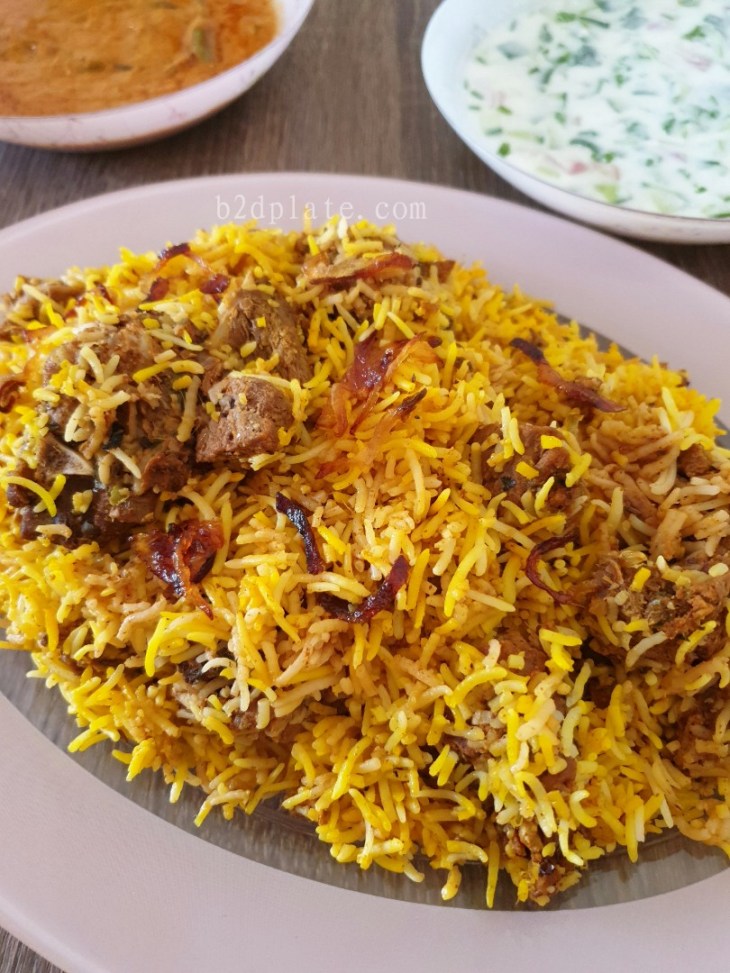 Enjoy the hyderabadi mutton biriyani with Mirchi ka salan and raita 🙂