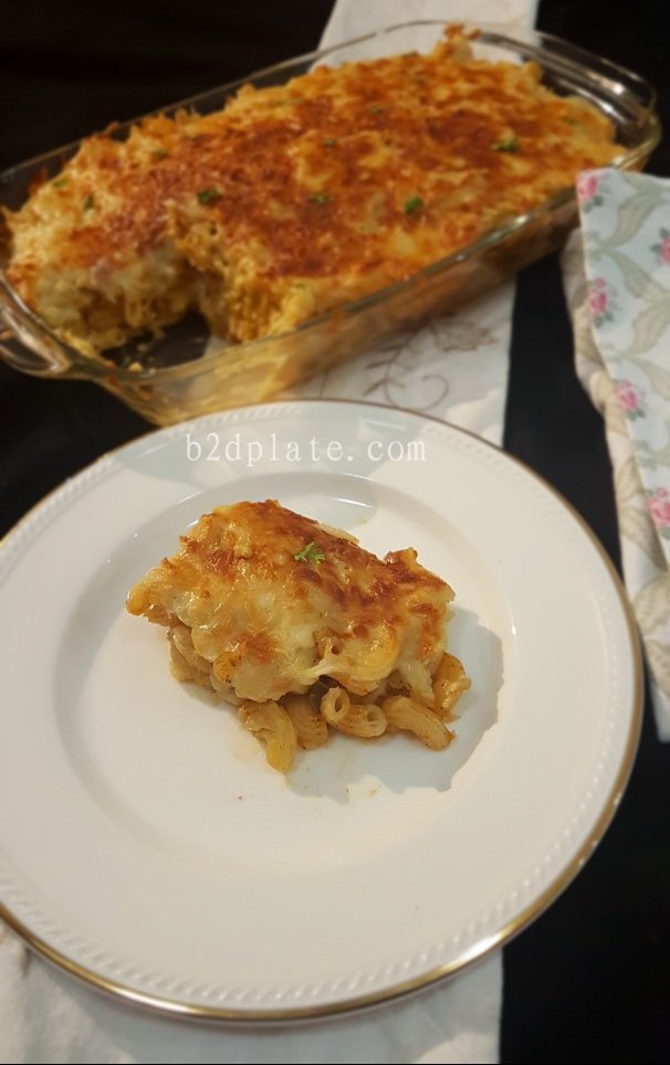 - Now add the remaining chicken pasta mix, béchamel sauce and again sprinkle shredded mozzarella and cheddar cheese