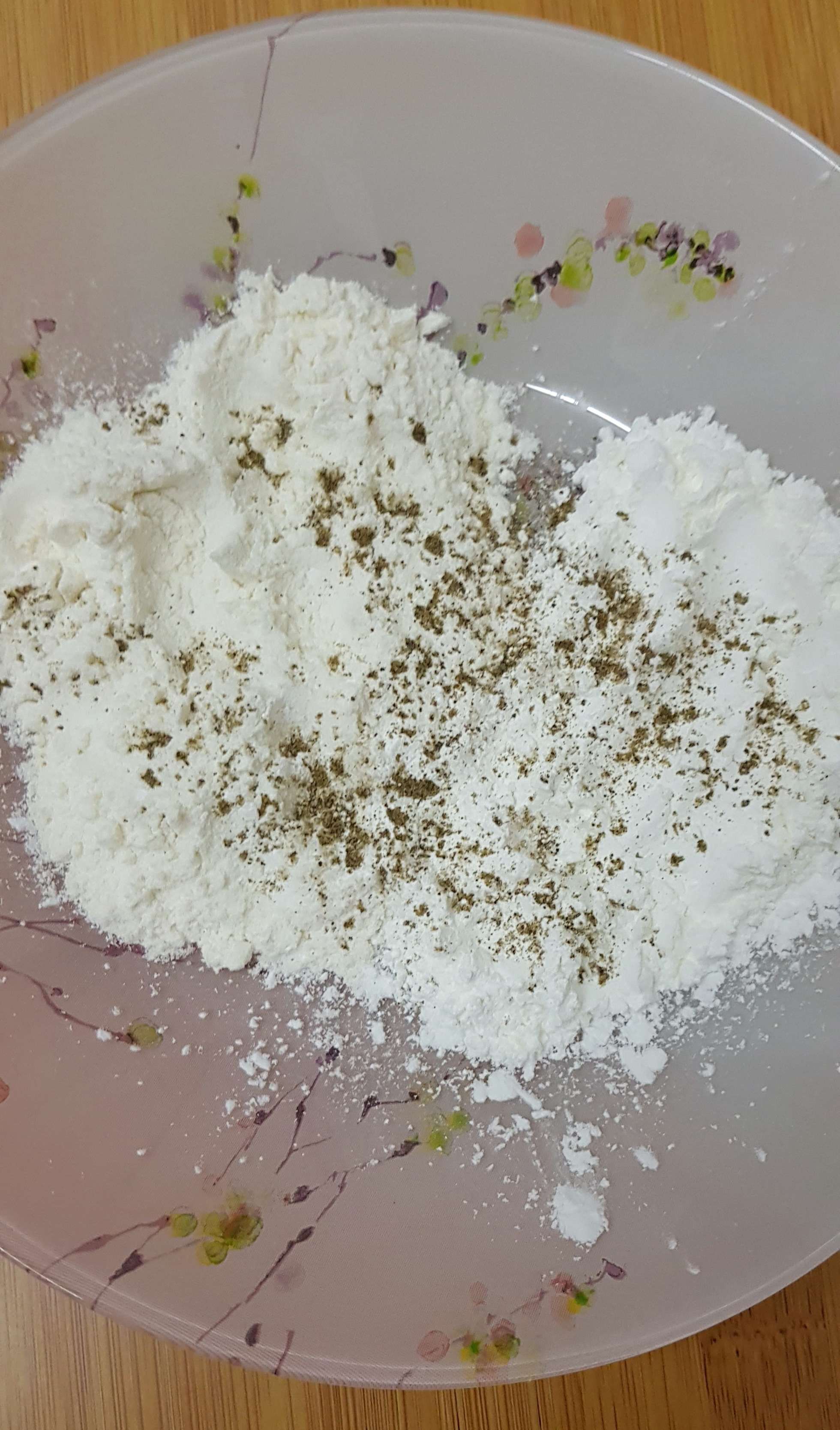 - In another bowl take cornflour, all purpose flour , salt and black pepper. Mix well. (add half a teapoon of chilly powder for spicy prawns)