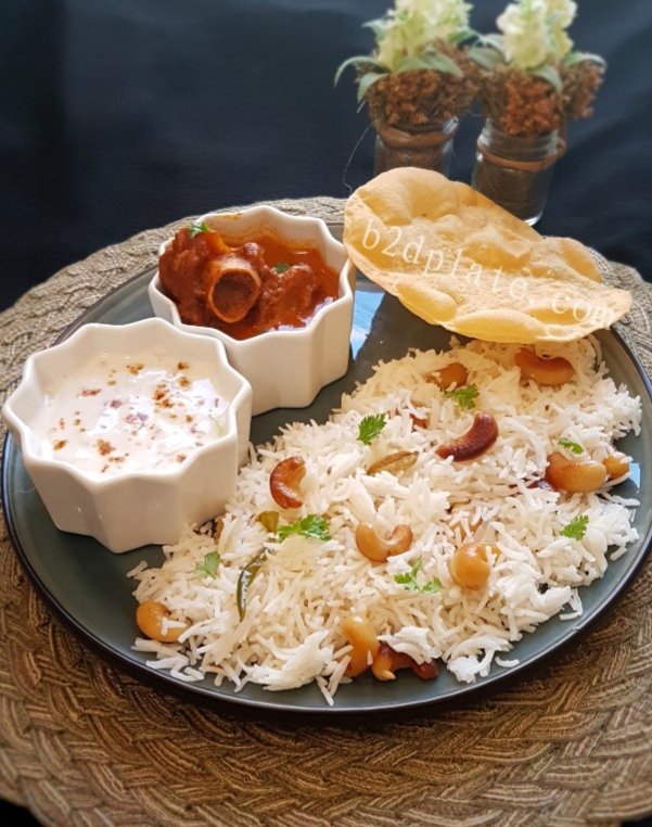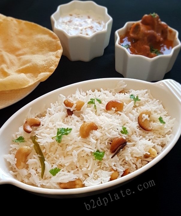 This is yet another one pot rice dish which is simple and delicious. As the name suggests, the main ingredient here is cashew nuts. Cashew nuts impart a unique flavor to the pulao. It can be accompanied with any veg or non veg gravy , raita , pappad , pickle.