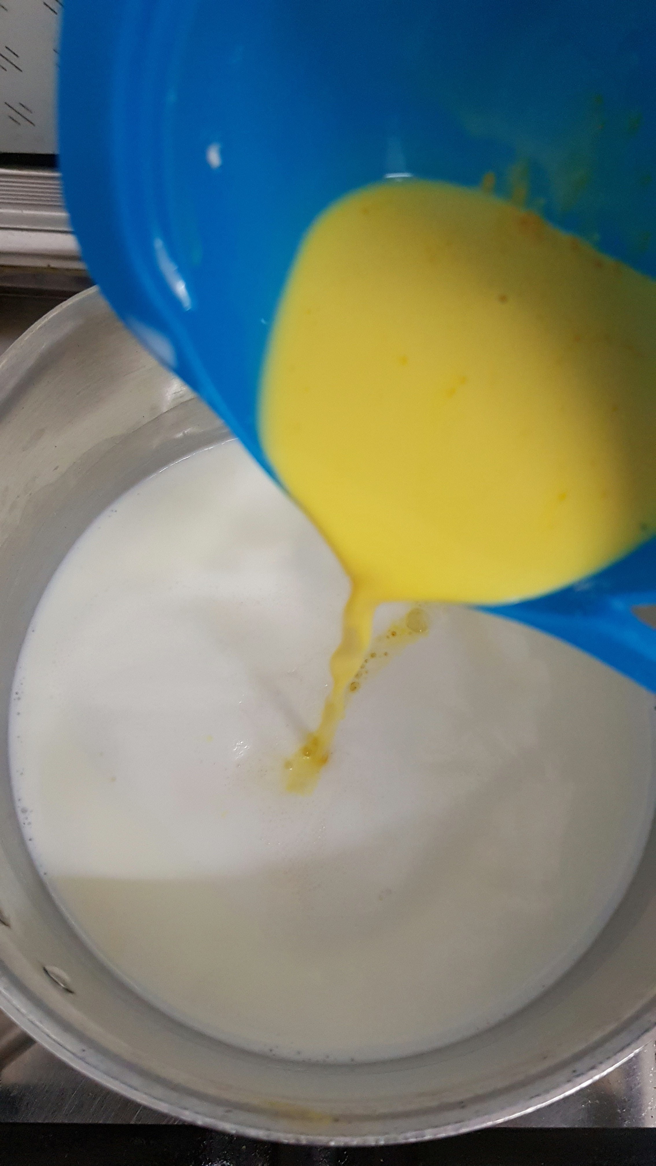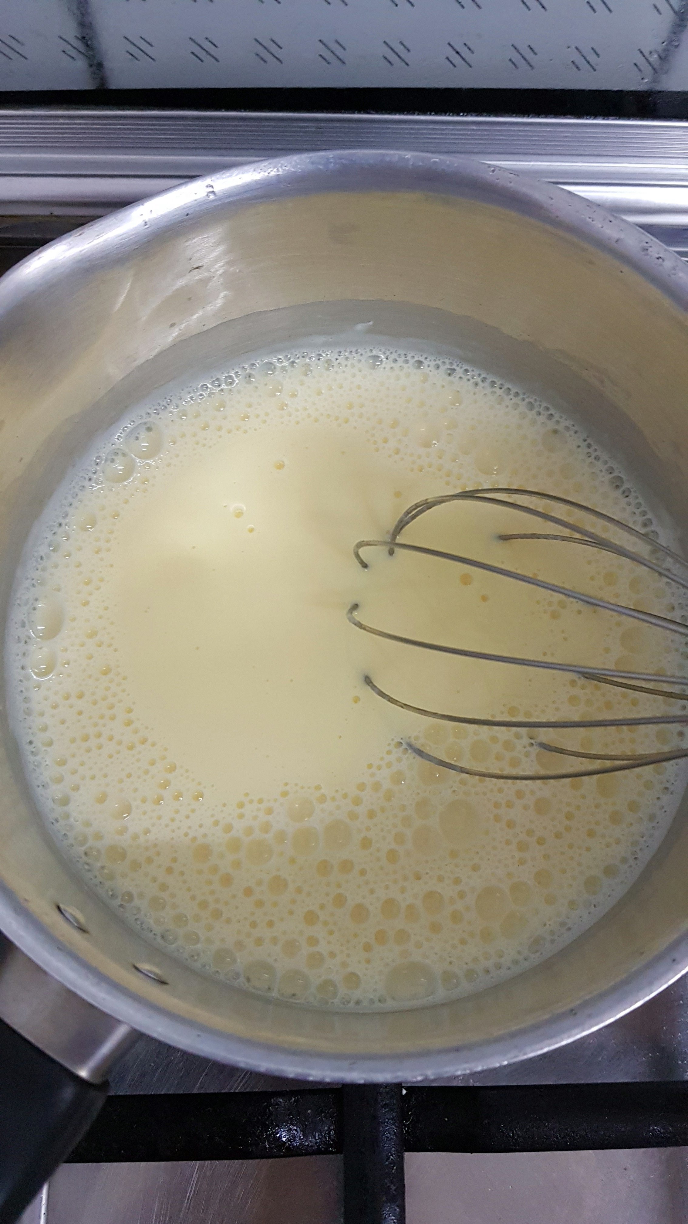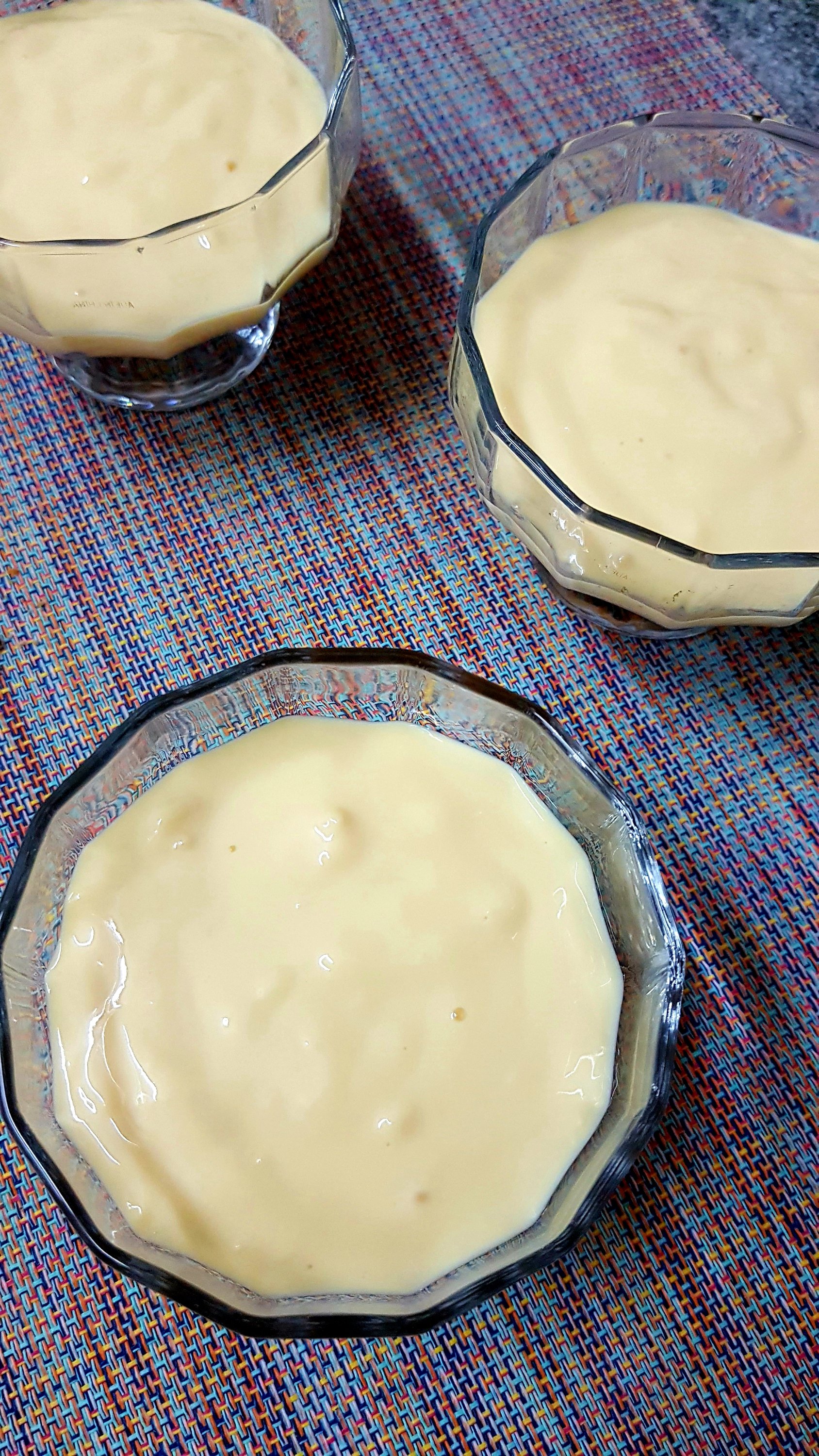 - Make custard in a regular method. Heat 450 ml milk, add 3 – 4 tbsp sugar. Mix heaped 2 tbsp custard powder in 50ml milk ( 3 tbsp ) and pour to the boiling milk. Mix well till milk thickens. Let it cool to room temp.
