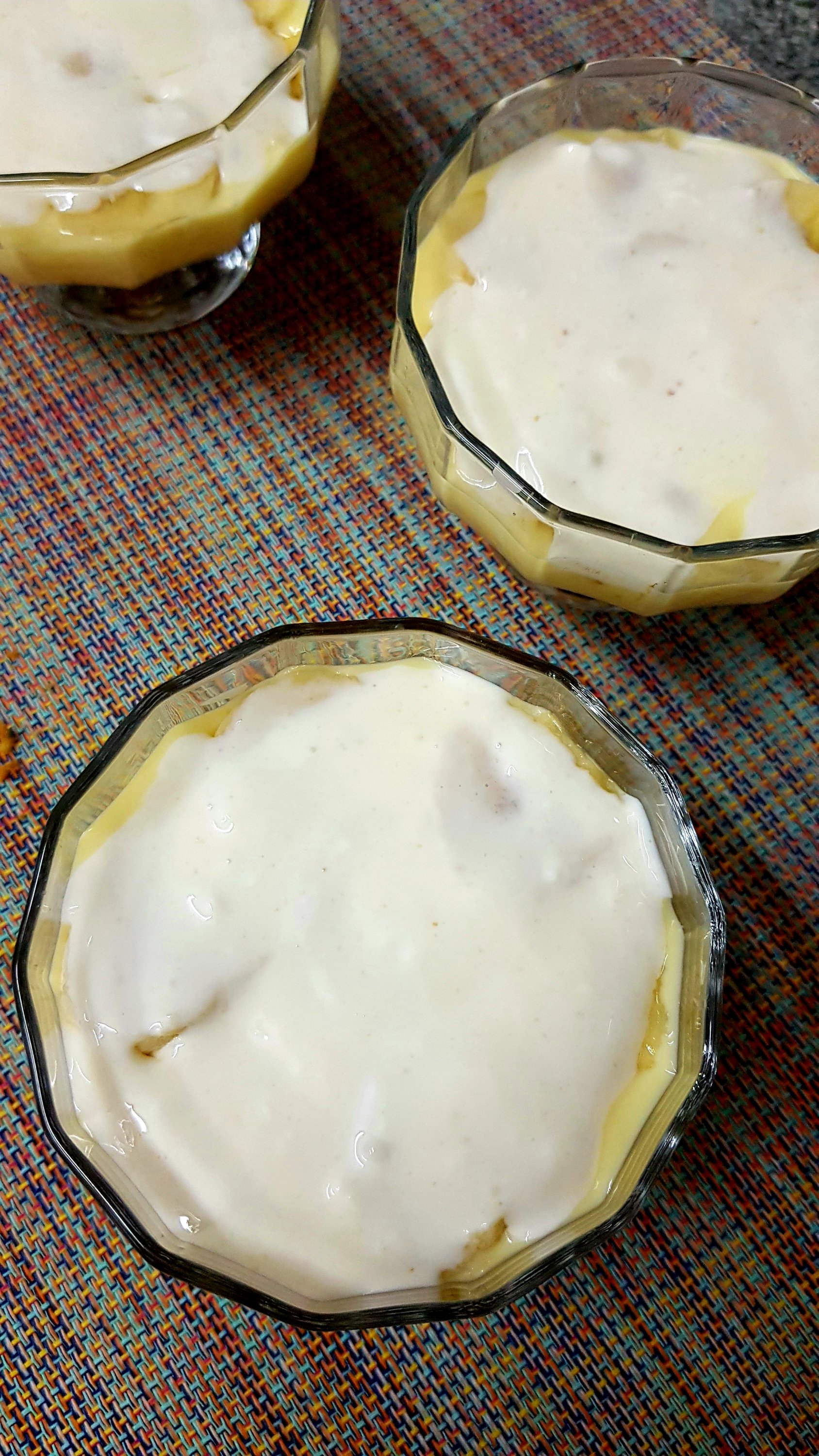 7. Pour the cream mix from step 3, over the fruits as 4th layer.