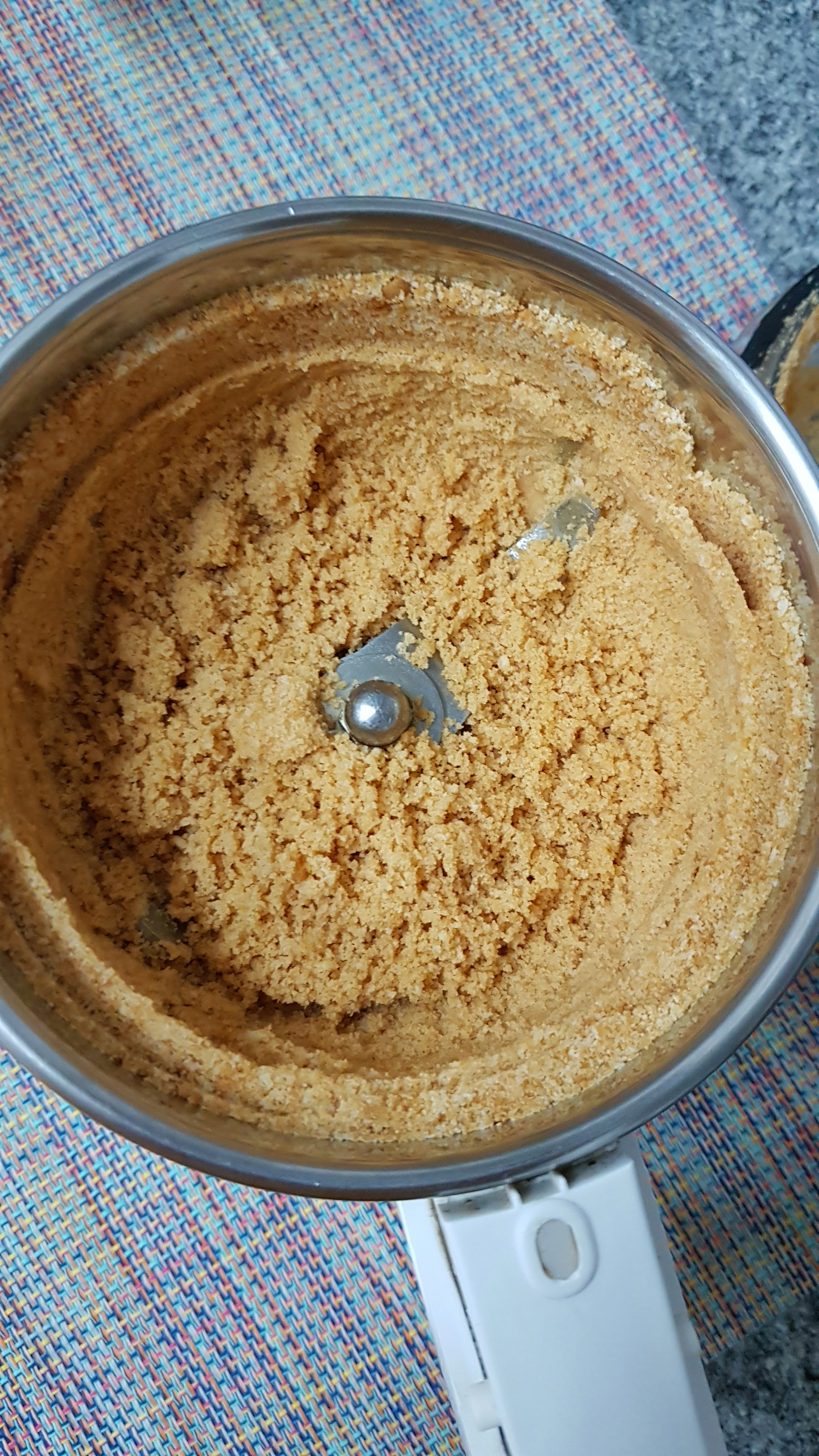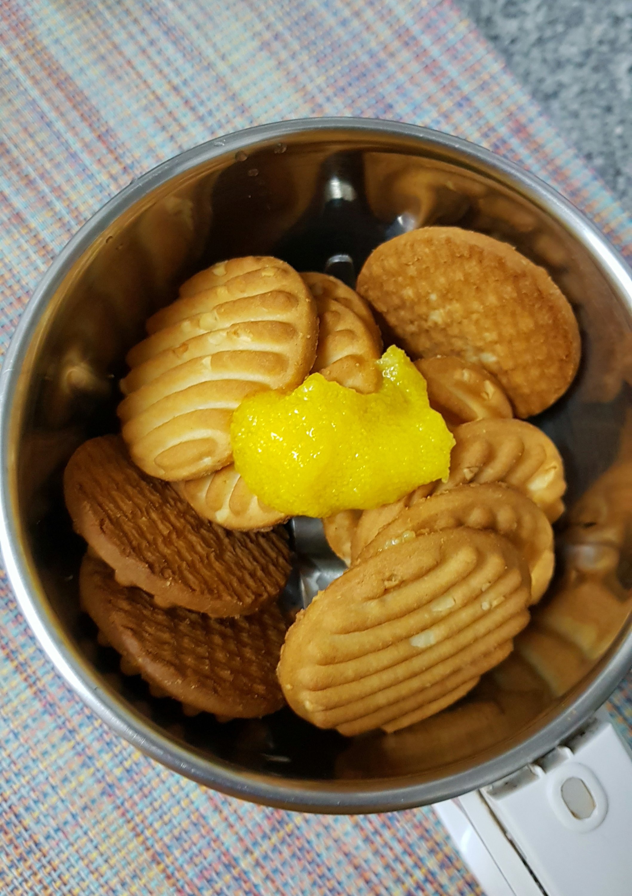 2. Crush biscuits & ghee/ butter in a blender & keep aside.
