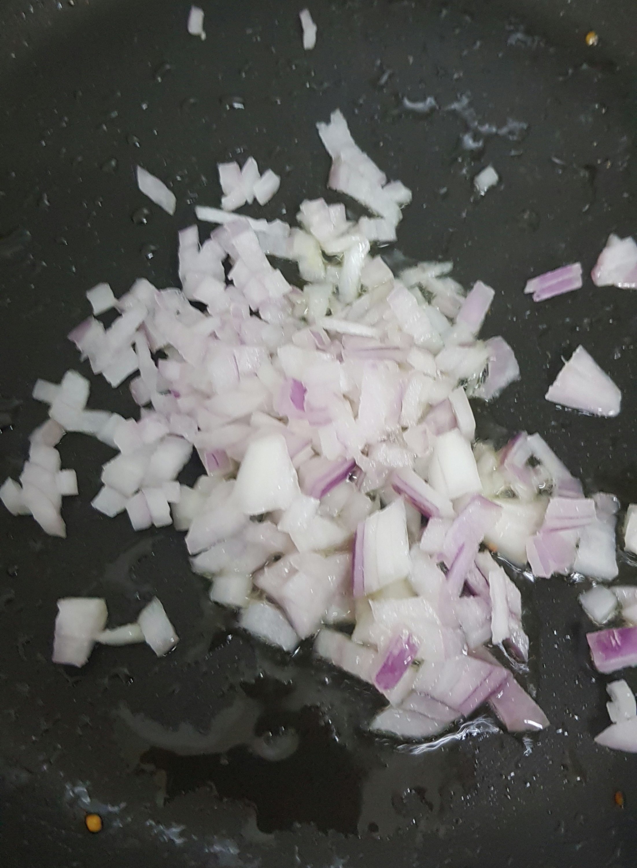 - Add chopped onions , saute till translucent.
