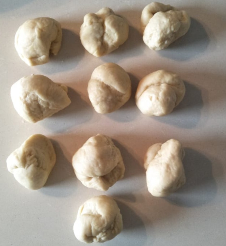- Take the dough. dust the kneading pad /area with flour. Knead the dough again well.