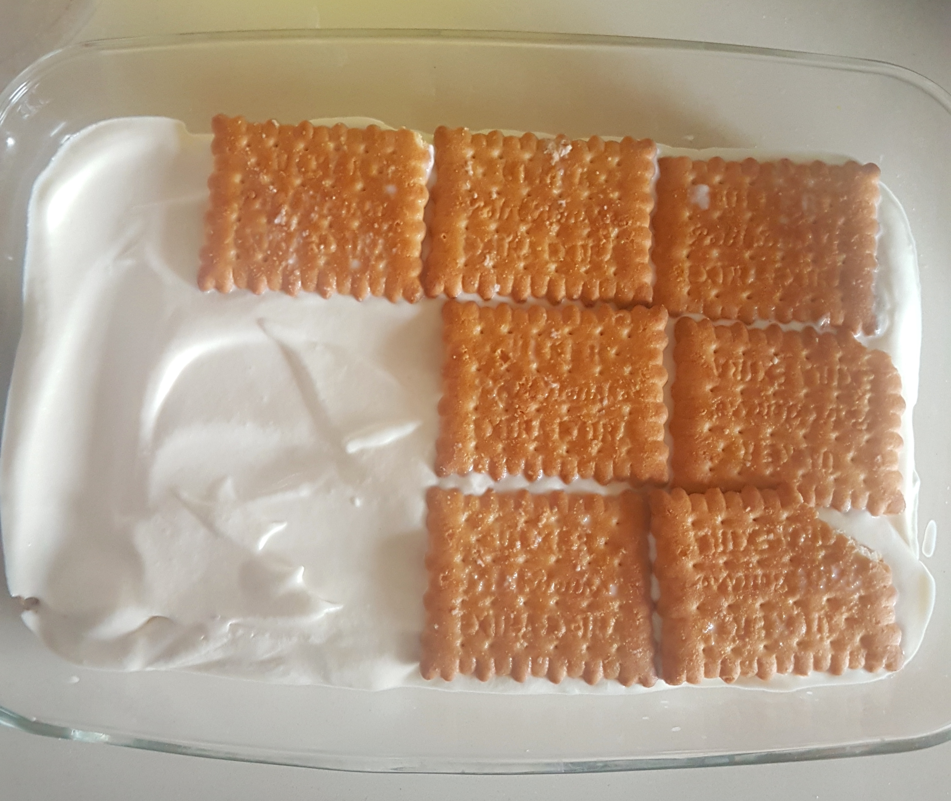 • Again dip the ulker biscuits in warm milk and arrange on top of the whipping cream mixture for one last time.