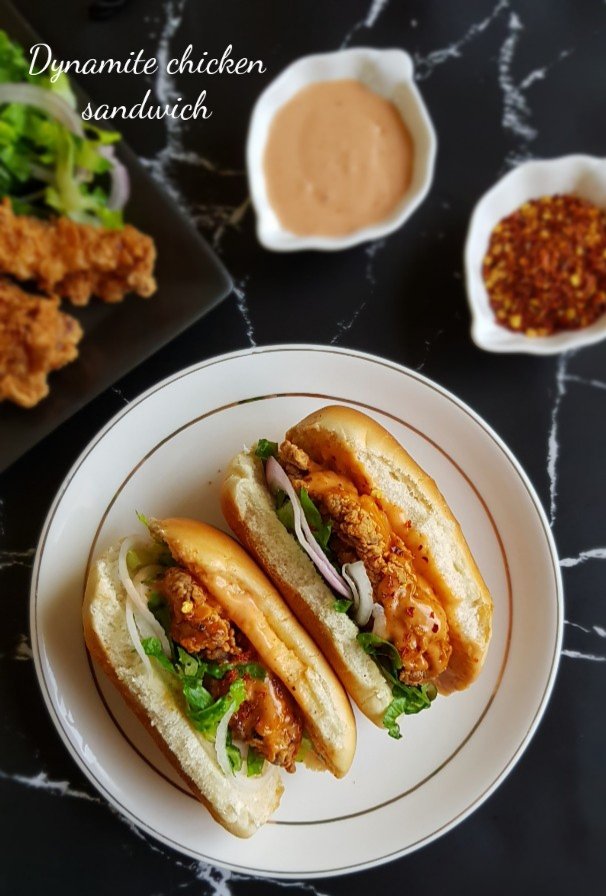 - The delicious dynamite chicken sandwich is ready to serve 🙂