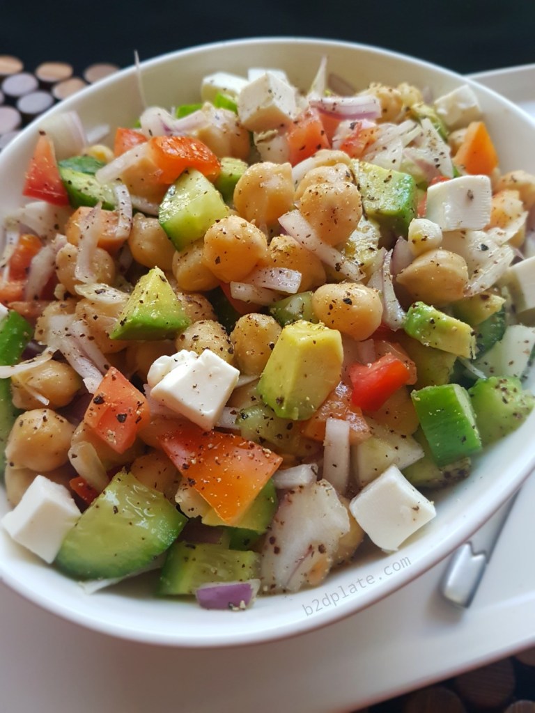 A healthy chickpea avocado salad loaded with veggies, herbs and cheese is a great option when you wish to keep your dinner simple yet healthy and filling. This salad is one of my favorite chilled salads. The salad is also a perfect ‘go-to ‘ dish for a get together or picnic or any such occasions.