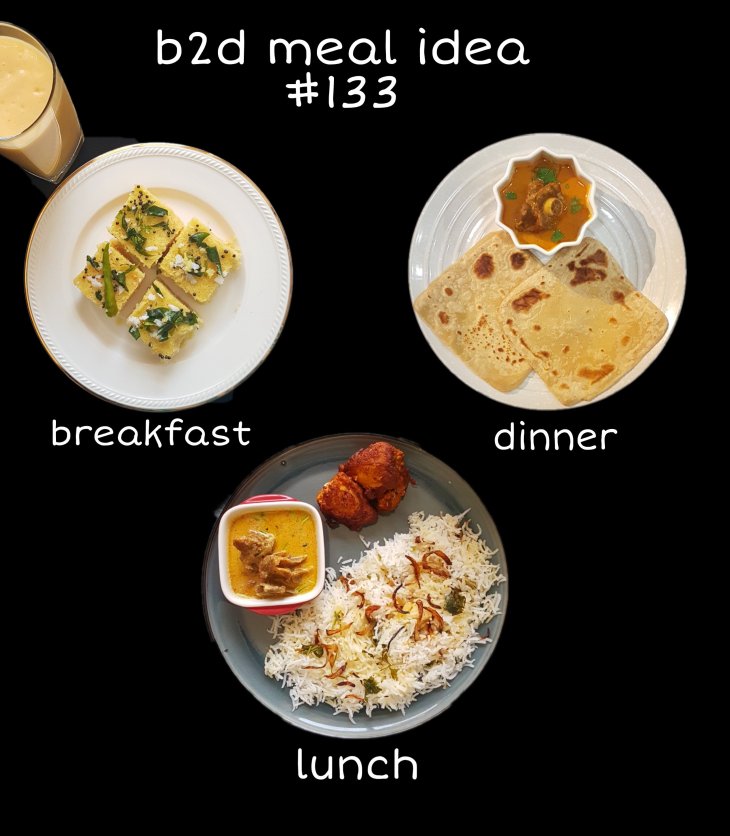 Have a wonderful day with these meals! Breakfast : Khaman Dhokla with chutney, mango milk shake Lunch…