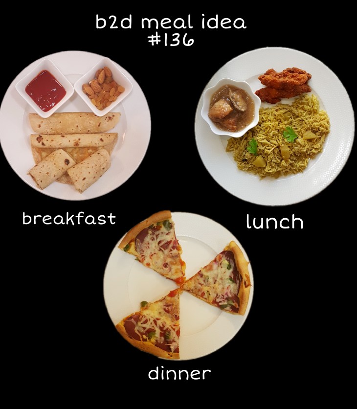 Have a wonderful day !!! Breakfast : Ragi Idli with Sambar and chutney Lunch : Butter Chicken Biryani with raita Dinner…