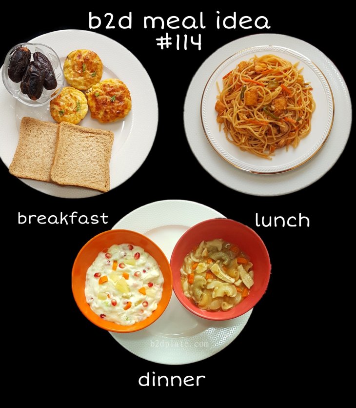 A day filled with light and healthy meals !!! Breakfast : Egg muffins,brown bread , dates…
