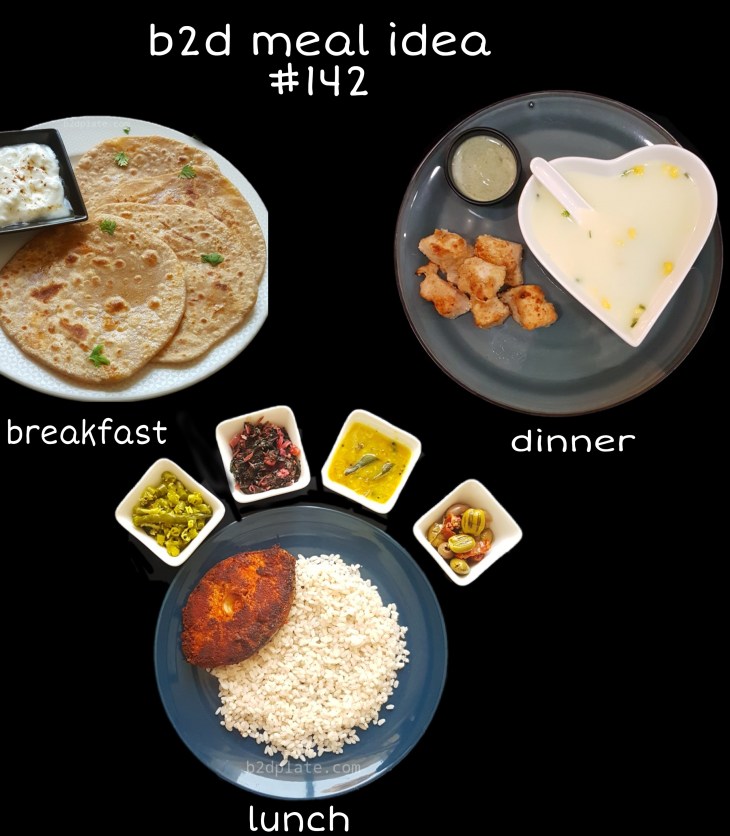 Have a good day with these delicious meals!!! Breakfast : Paneer paratha with curd Lunch…