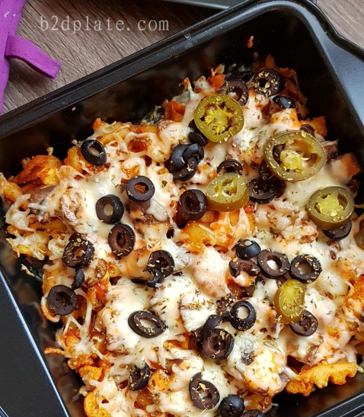 The potato fries are loaded with cooked mushroom or chicken , topped with mayo sauce…